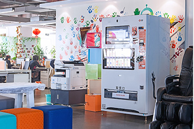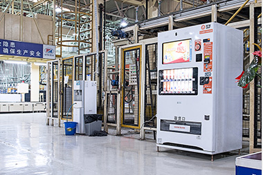 自2012年1月起,二十臺友寶售貨機(jī)陸續(xù)進(jìn)駐摩比斯工廠,陪伴在車間、食堂和員工休息區(qū)內(nèi), 為近3000名員工提供服務(wù)。豐富的商品選擇,時刻為員工們補(bǔ)充能量; 大屏上勵志的企業(yè)宣傳片,溫馨的安全提示,精彩的活動回顧等等,更是讓員工們感受到企業(yè)大家庭的溫暖。